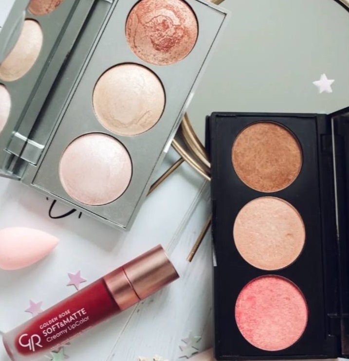 После того как вы нанесете тональный крем и припудрите лицо, возьмите скошенную кисть и специальную палетку для контурирования. Например, Хайлайтер для лица палетка GR Metals Sculpting Palette.